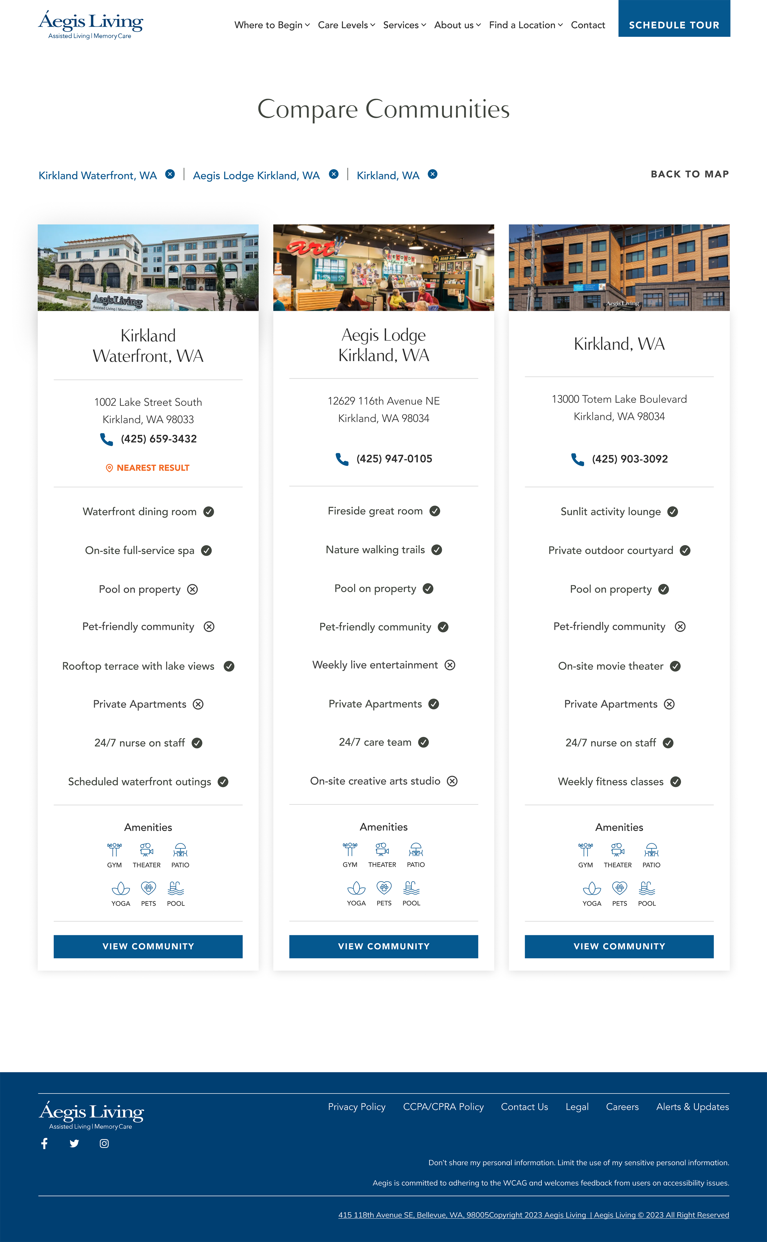 The redesign simplified the entire experience—clearer navigation, stronger content hierarchy, and a visual system that finally matched the premium nature of Aegis communities. The new component library made it easier to maintain consistency across 40+ locations, while improved accessibility ensured the site was welcoming to a wider range of users.